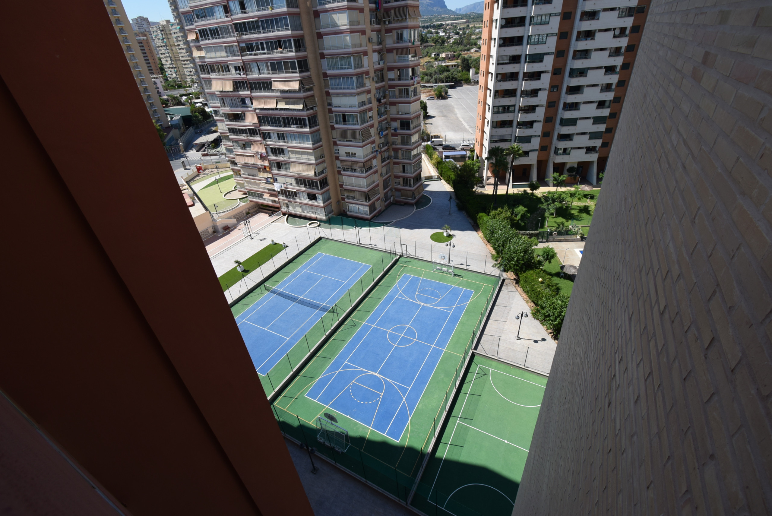 Dispose d'un ascenseur, jardin, terrain clôturé, terrasse vitrée, fer à repasser, aire de jeux pour enfants, court de tennis, climatisation, chauffage par pompe à chaleur, piscine communautaire + piscine pour enfants, parking couvert communautaire dans le même bâtiment (pas de place garantie pour chaque appartement), 1 ventilateur, 1 téléviseur.