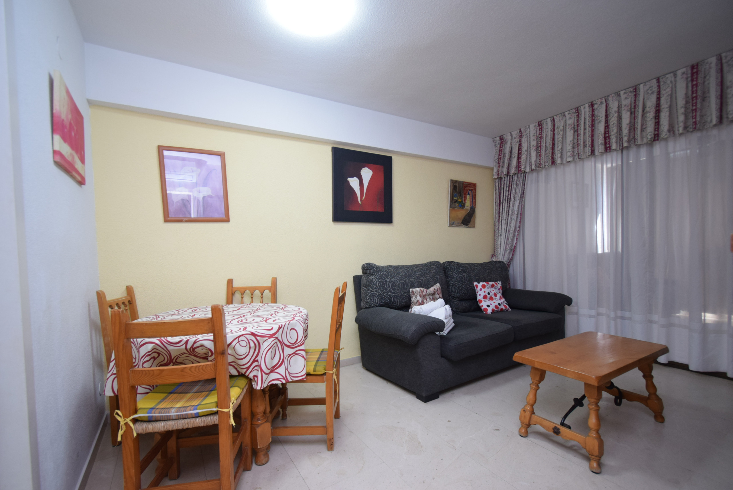 O apartamento, localizado na praia do Levante em Benidorm, dispõe de 1 quarto com 2 camas e um sofá-cama na sala com capacidade máxima para 4 pessoas.